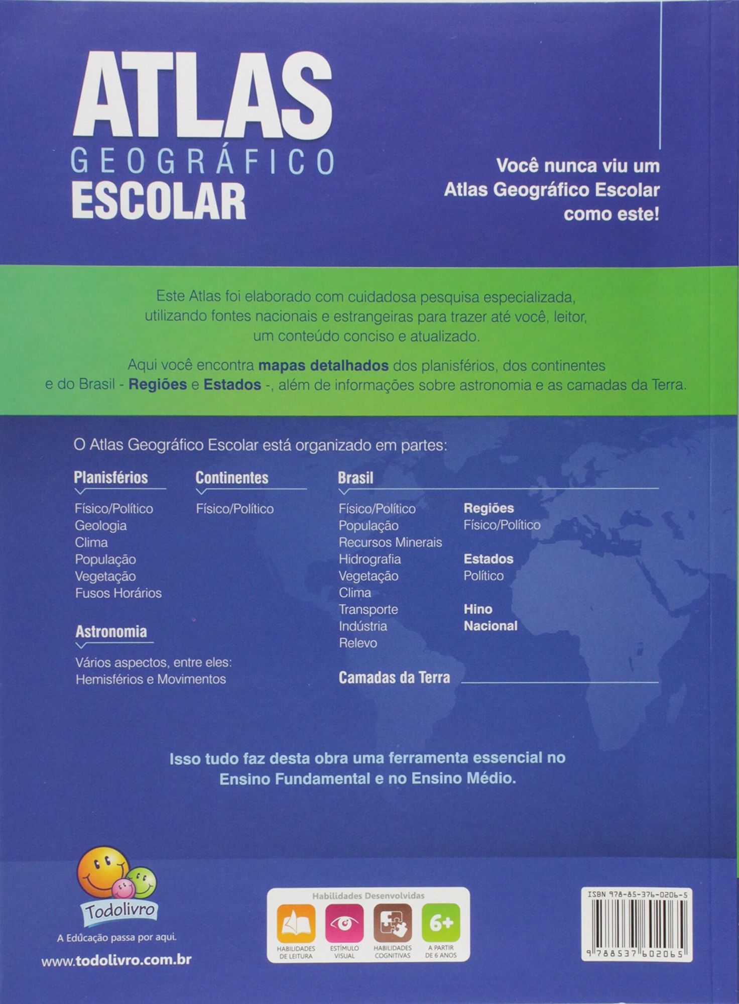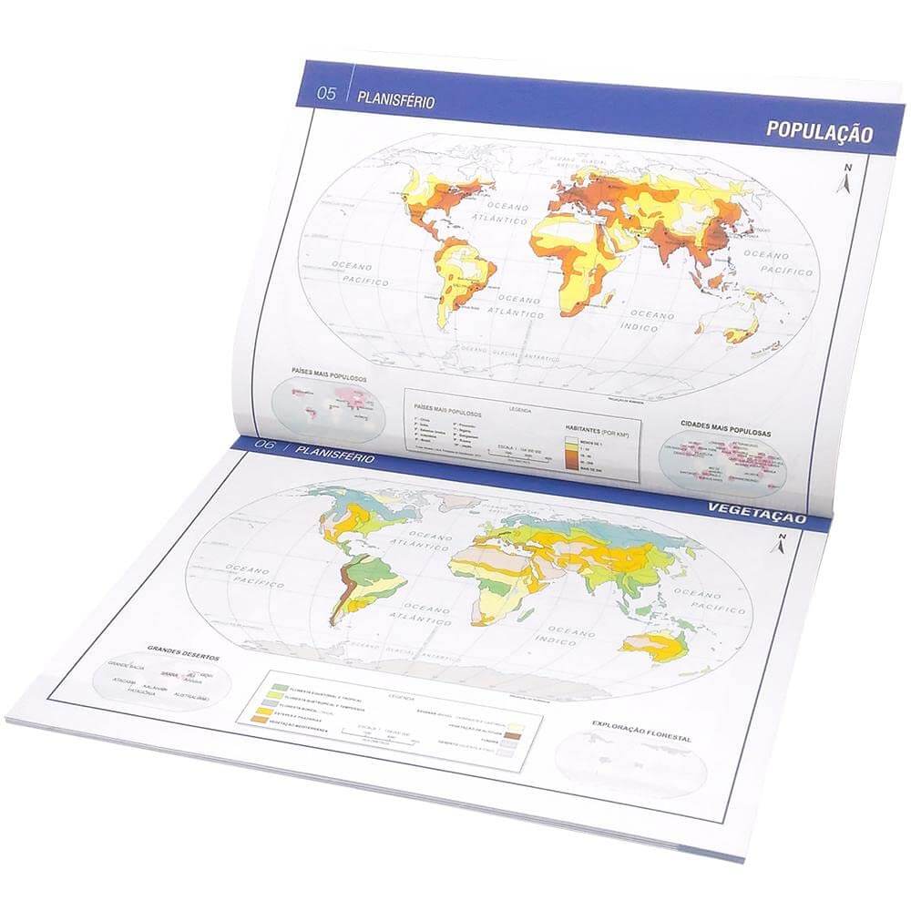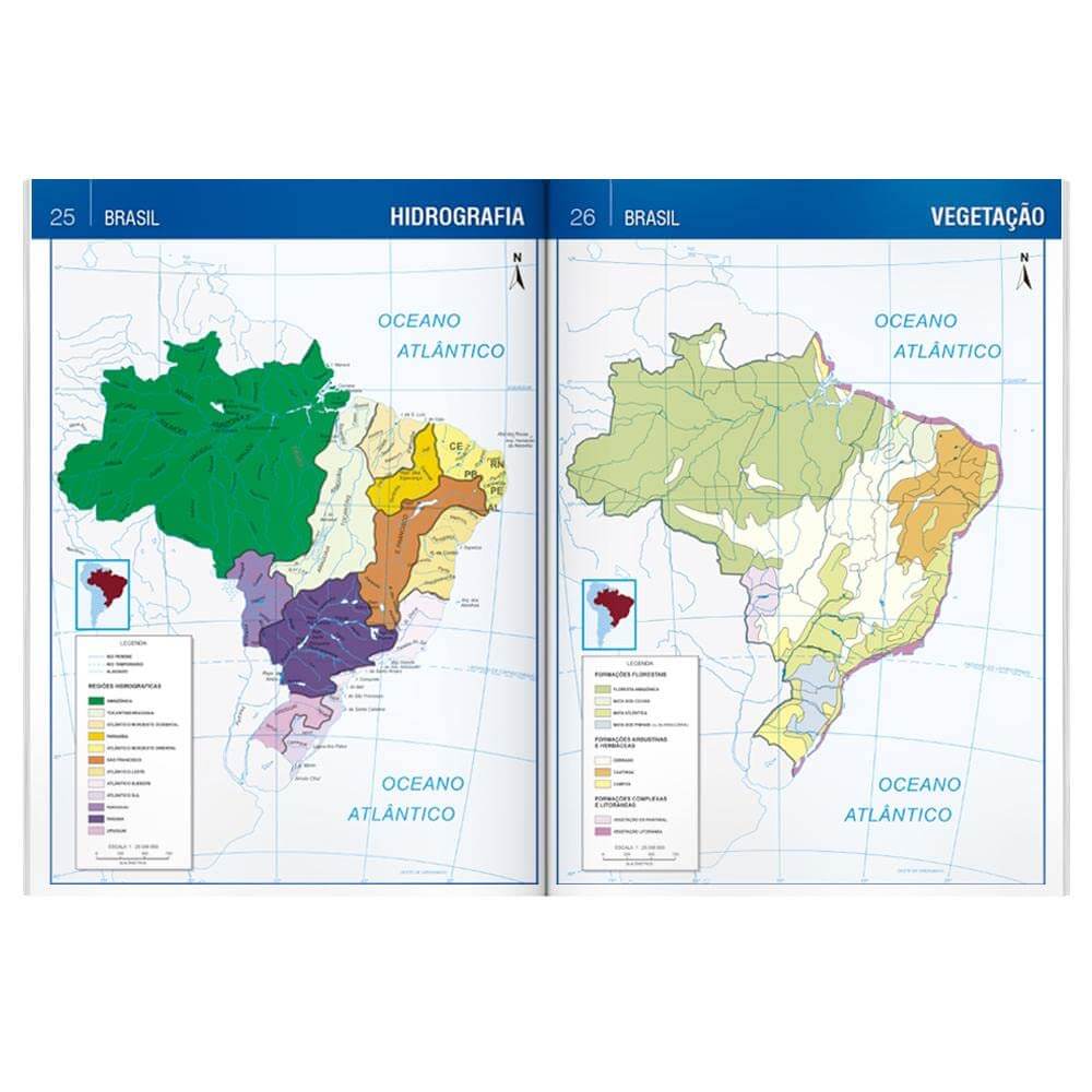 Características do produto: Este Atlas foi elaborado com cuidadosa pesquisa especializada, utilizando fontes nacionais e estrangeiras para trazer até você, leitor, um conteúdo conciso e atualizado. Aqui você encontra mapas detalhados dos planisférios, dos continentes e do Brasil – Regiões e Estados -, além de informações sobre astronomia e as camadas da Terra.