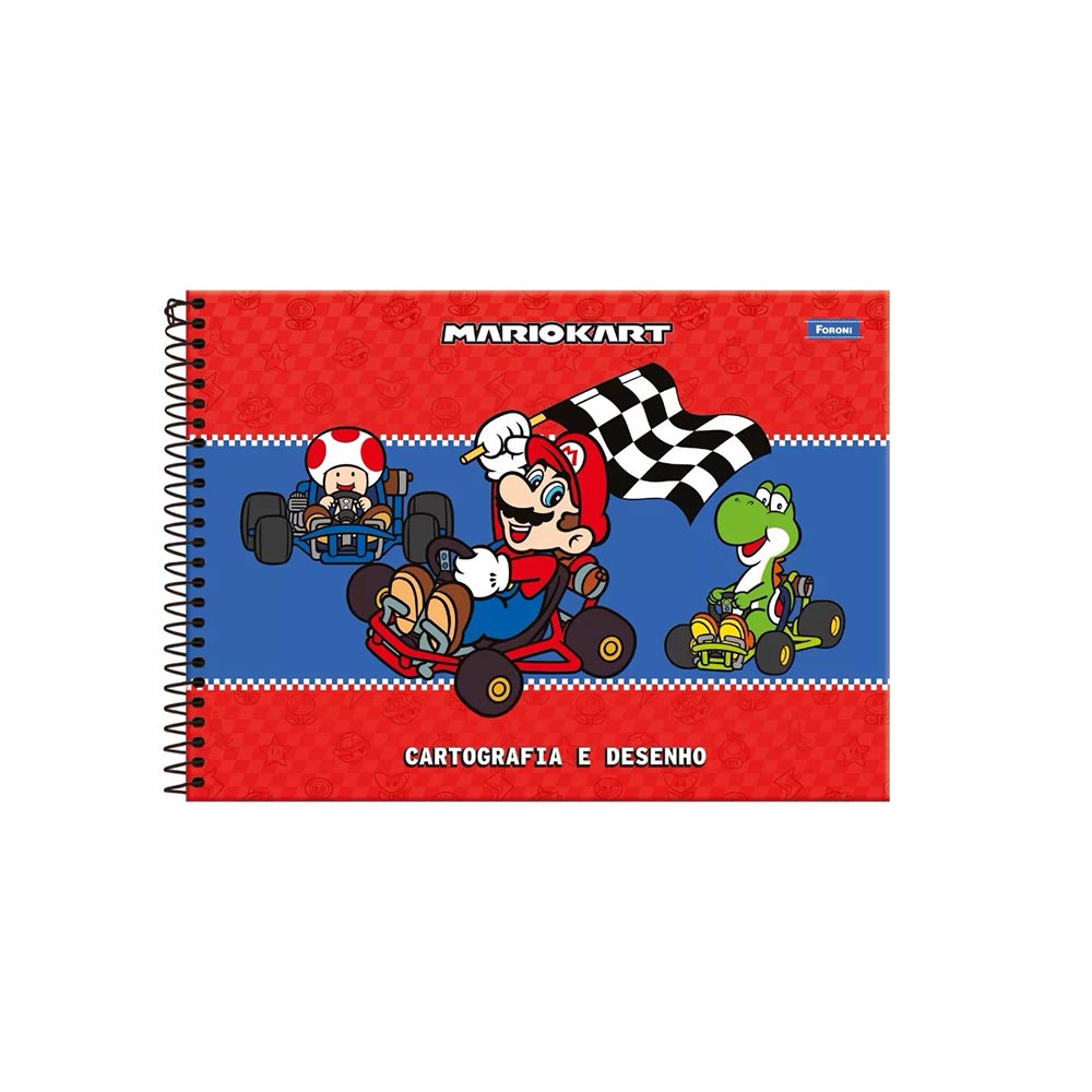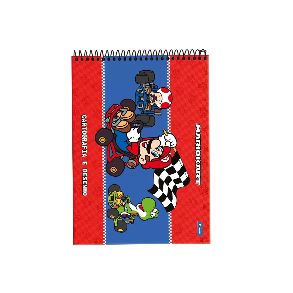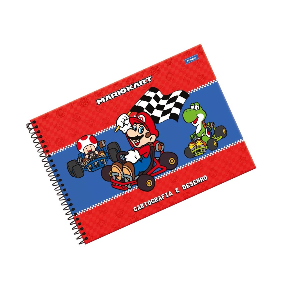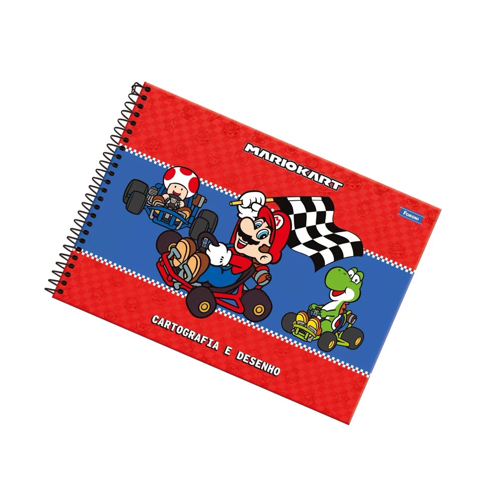 O caderno de cartografia e desenho Super Mario, da Foroni é produzido em capa dura envernizada, conta com 80 folhas brancas perfeitas para que a criança possa desenvolver seu aprendizado e