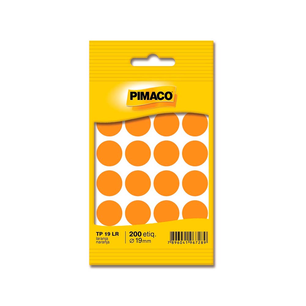 Etiqueta Redonda Adesivo Colorido Laranja TP19LR 19mm 200 Unidades Pimaco
