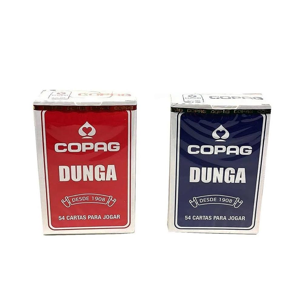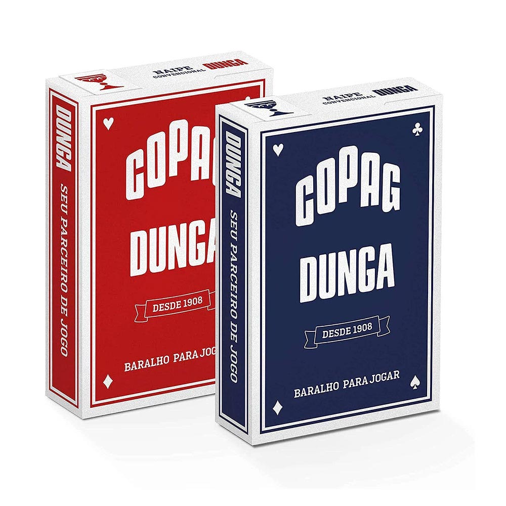 Baralhos Dunga Copag Naipe Convencional Azul e Vermelho Depois de um dia daqueles nada melhor que um carteado para relaxar, divertir, passar o tempo com amigos e familiares, seja jogando um truco, cacheta, pife, buraco ou outros tantos jogos de baralho. Original Copag a mais de 100 anos fabricando os melhores baralhos do Brasil. Produto de qualidade. Não transparente, atóxico e reciclável. Cartão laminado permitindo um agradável manuseio