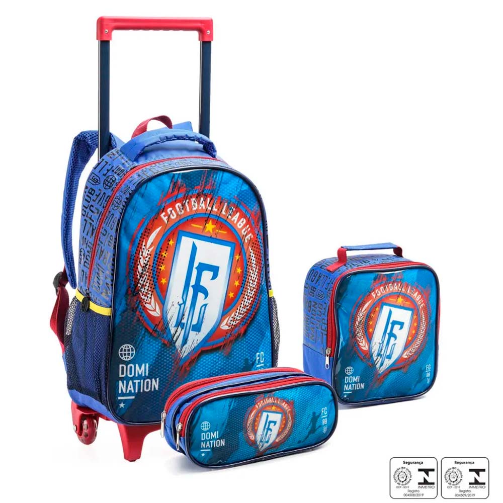 Kit Mochila Rodinhas Football League Azul Infantil Com Lancheira Estojo Seanite