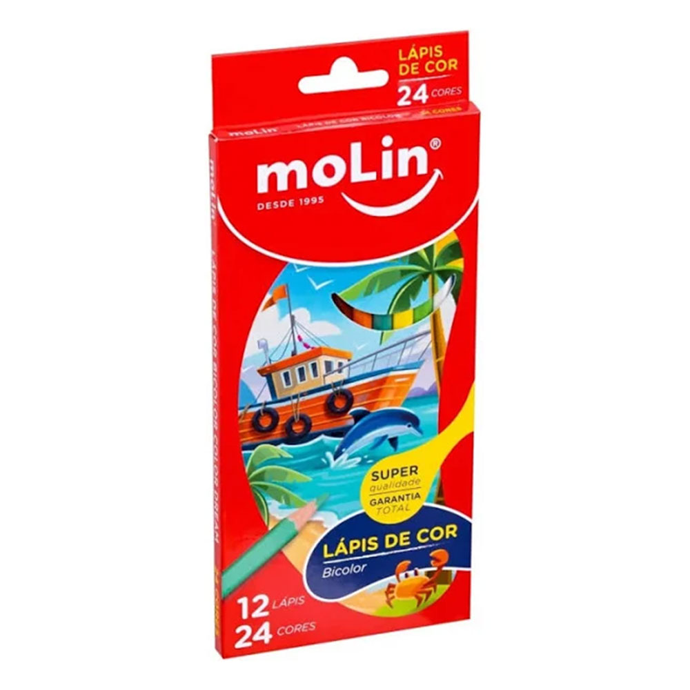 Lápis de Cor Bicolor Dream 12 Lápis 24 Cores Molin