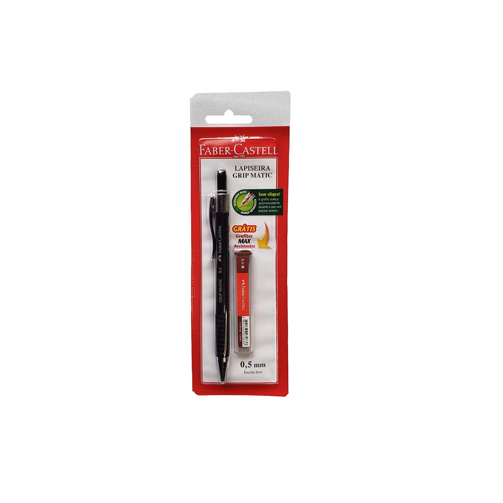 Conteúdo da Embalagem: 01 Lapiseira Grip Matic 0.5 mm + 1 tubo de grafite Faber Castell