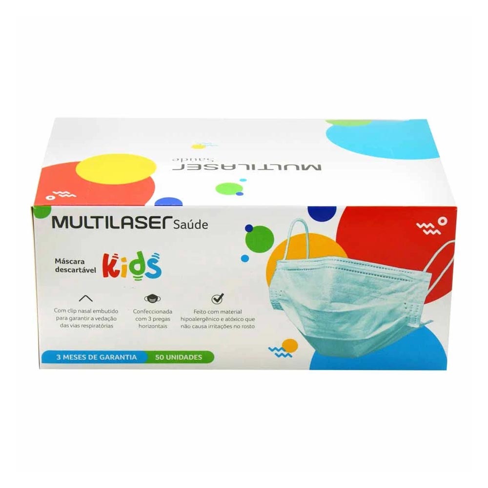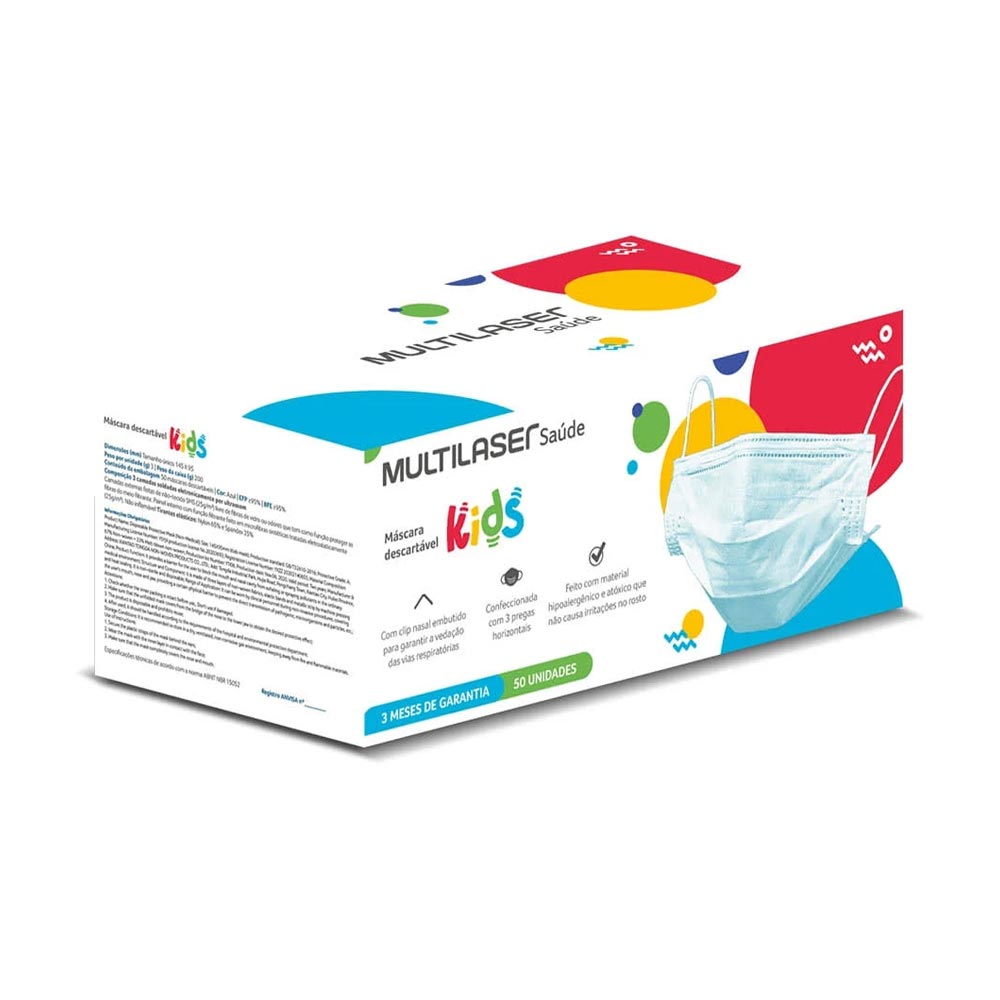 Conteúdo da Embalagem: 01 Pacote de 50 Máscaras de Proteção Infantil Descartável 3 Camadas Azul HC655 Multilaser